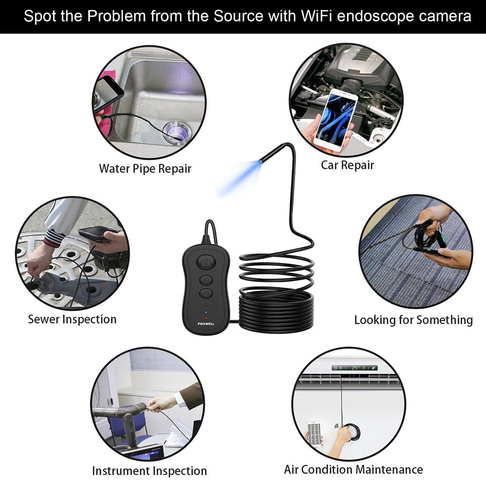 Foxwell WIFI Endoscope Kamera Waterproof Semi -starre Kabelinspektion Kamera 5.5mm 5M 10M Endoskop Borescope Für IOS Android PC